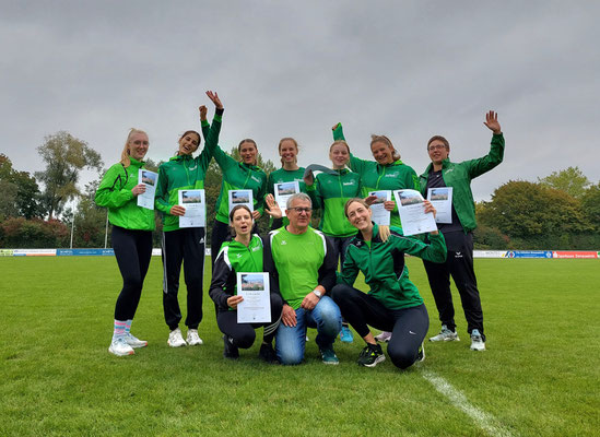 Auch wenn am Ende einer langen Saison und bei kalten Temperaturen bei den meisten Athletinnen keine persönlichen Bestleistungen mehr zu erwarten waren, konnten die 10 Damen und ihr Trainer Hans Mayer doch einen spannenden Kampf um den schwäbischen Meistertitel gegen die LG Aichach-Rehling liefern. Am Ende gewannen sie mit einem starken Auftritt und 6520 Punkten das Silberpodest und damit den Schwäbische Vizemeistertitel mit einem knappen Abstand von nur 53 Punkten. Für das neu formierte Frauenteam der LG Reischenau-Zusamtal ist das ein tolles Ergebnis. (VM). Ergebnisse>>