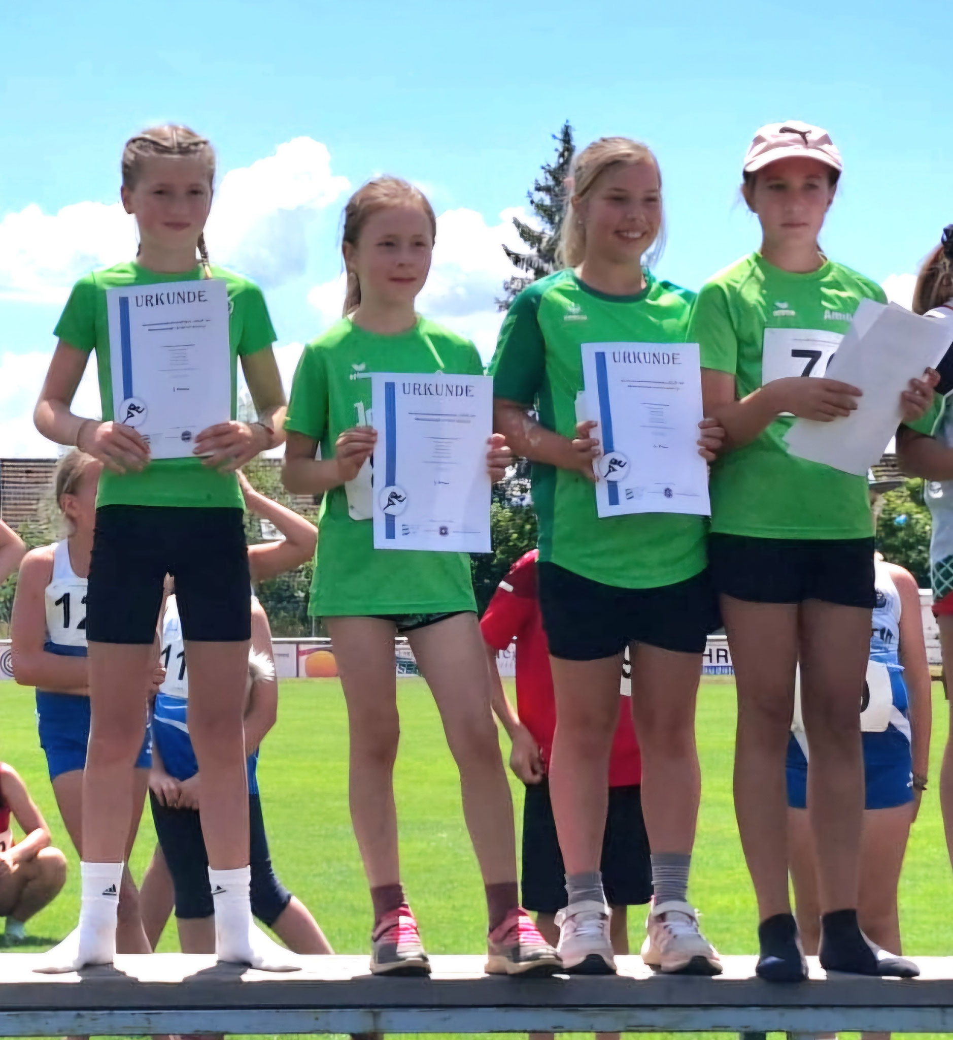 Die Mädchenriege bestand aus Jana Hiehler, Celine Leppert und Emilia Pauli (alle W10) sowie Fthawit Debasay, Rebecca Huber, Amelia Korgel, Paulina Szupak und Ida Unger (alle W11). Emilia erreichte Bronze über 800 Meter, Jana schleuderte ihren Schlagball mit 27 m auf den Silberrang, und Rebecca wurde mit einer Höhe von 1,24 m Kreismeisterin im Hochsprung.