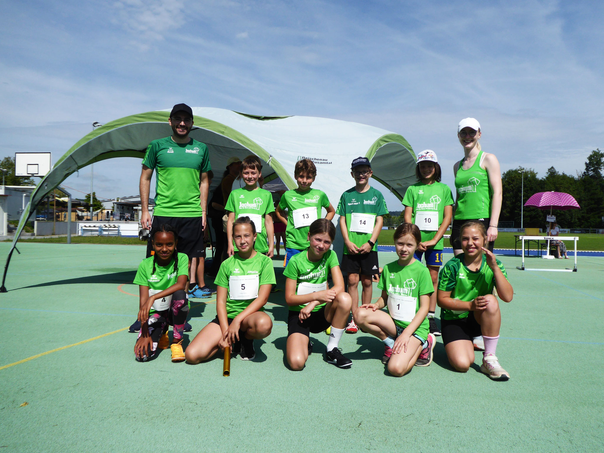 Auch unser U10-Team mit den Trainerinnen Johanna Maier und Teresa Maier wusste sich zu behaupten. Bei äußerst starker Konkurrenz konnten die U10-Kids in den gleichen Disziplinen, aber etwas längeren Laufstrecken mit einem beachtlichen achten Platz überzeugen.
