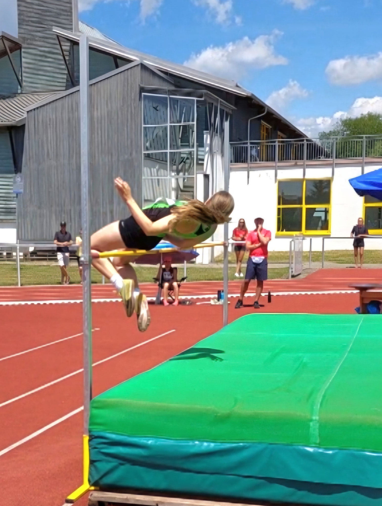 In der U16 waren die zu meisternden Disziplinen 100 Meter-Sprint, Hoch-, Weitsprung und Kugelstoßen. Emilia Kindig (W14) freute sich über die zweitbeste Höhe im Hochsprung (1,40m) und erreichte ein beachtliches Gesamtergebnis von 1561 Punkten, dicht gefolgt von ihrer Kollegin Katharina Werner (W15) mit 1521 Punkten.