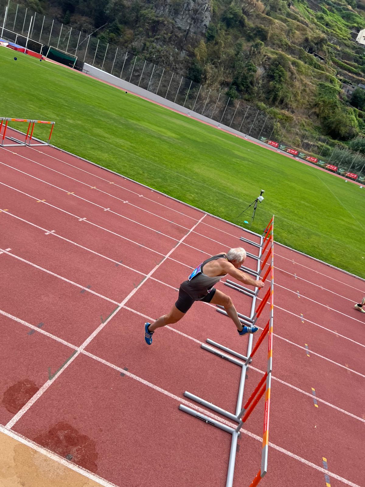Der Technikspezialist Jürgen Hinterstößer (M65) bewährte sich ebenfalls erfolgreich. Obwohl Jürgen wegen seiner Kugel- und Diskus-Weiten mit sich haderte, gelangen ihm Top-Ergebnisse bei sieben weiteren Starts. Und obwohl Jürgen am Ende des anstrengenden zweiten Wettkampftages, nach neun Disziplinen, auf den Start beim abschließenden 1500m-Lauf verzichten musste, belegte er dennoch Rang 11 (4042 Pkt.).